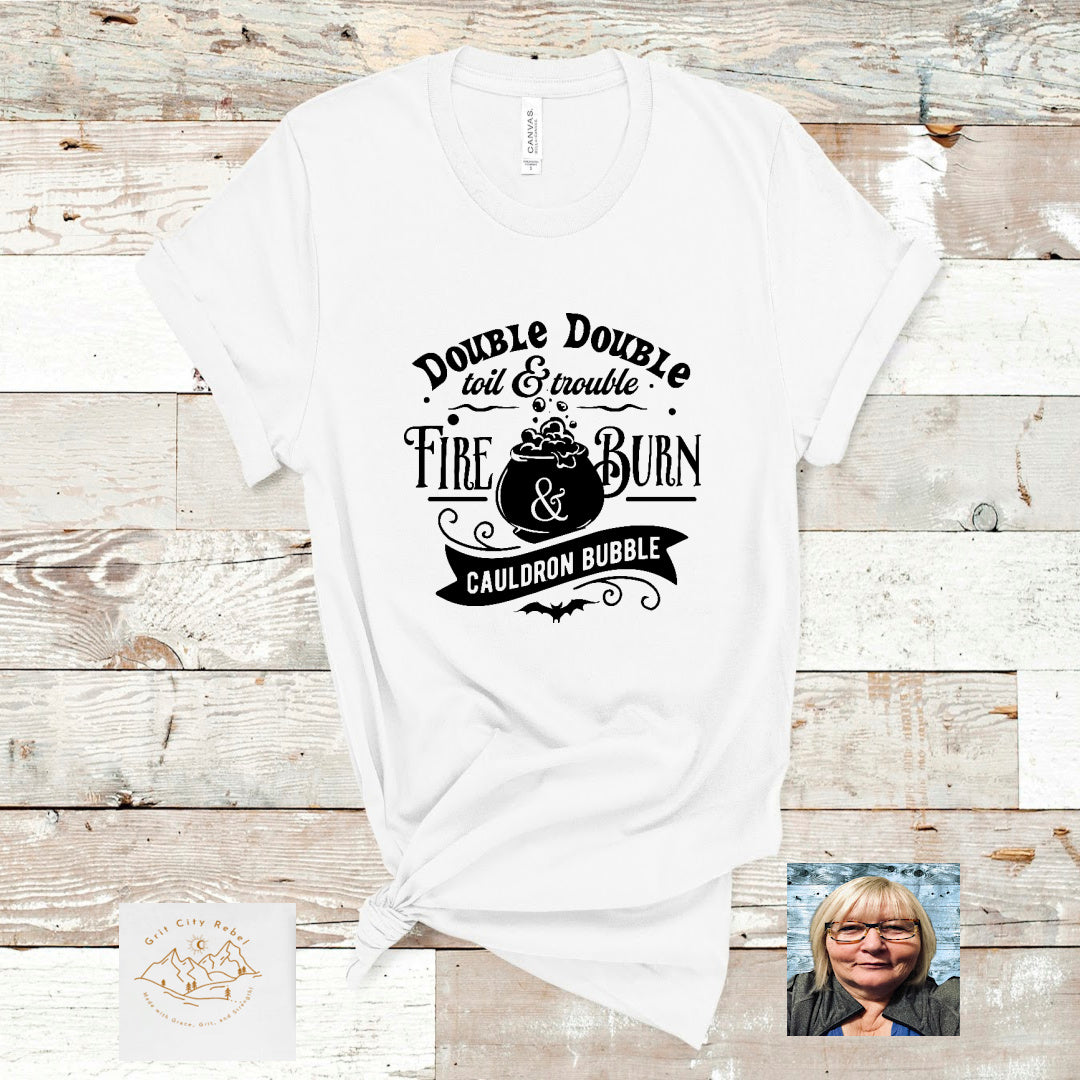 Featuring a fun saying “Double Toil and Trouble”, this t-shirt will become your go to t-shirt.