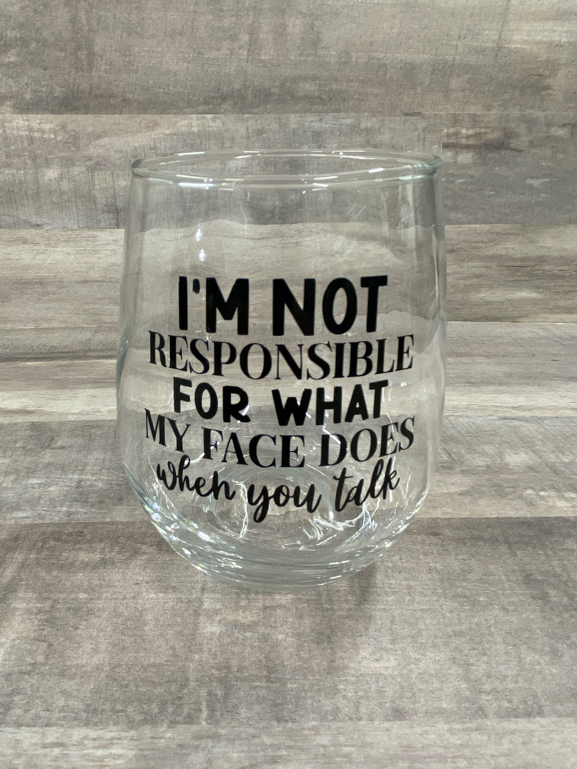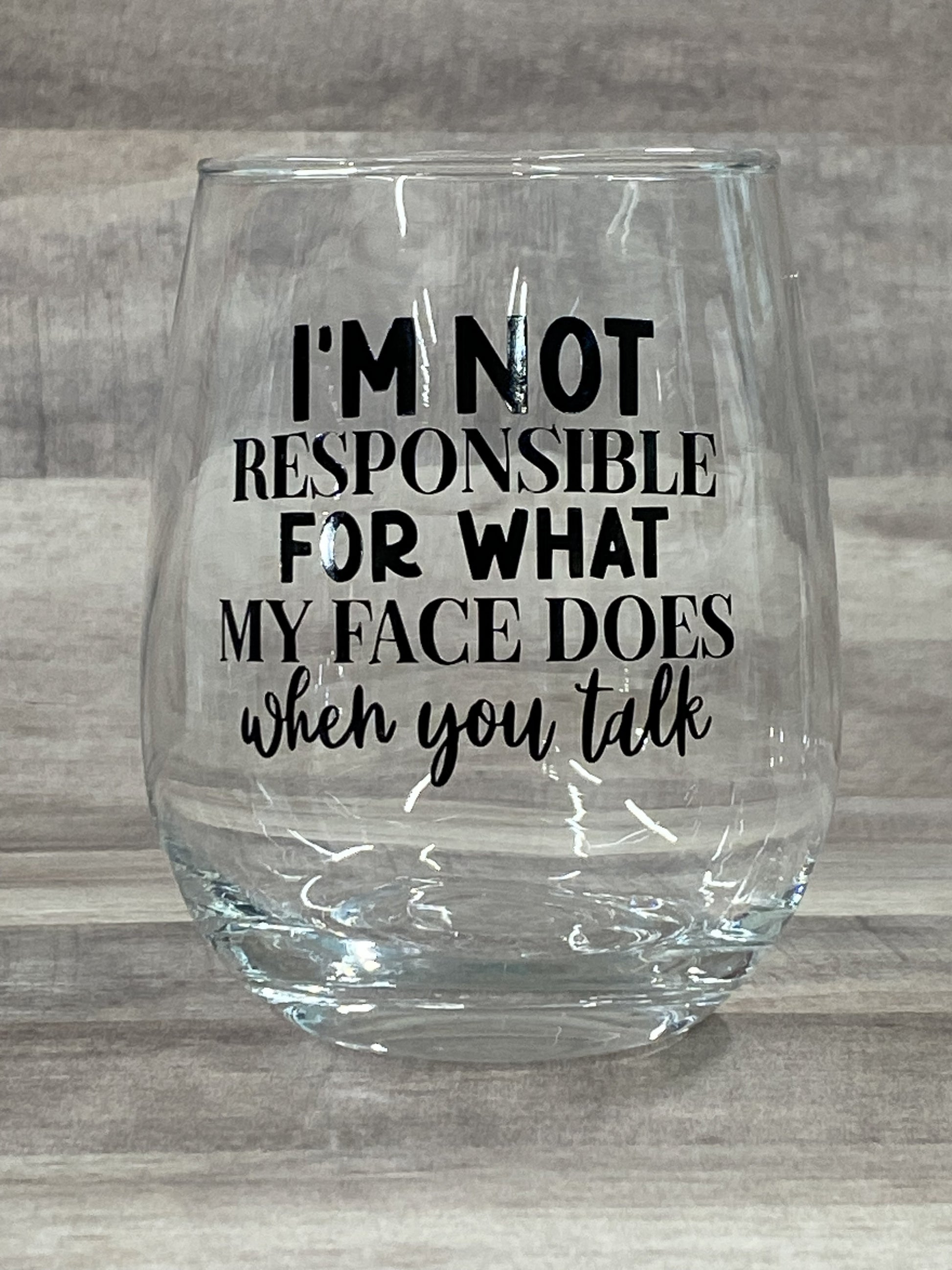 I'm not responsible for what my face does when you talk on a 15oz stemless wine glass