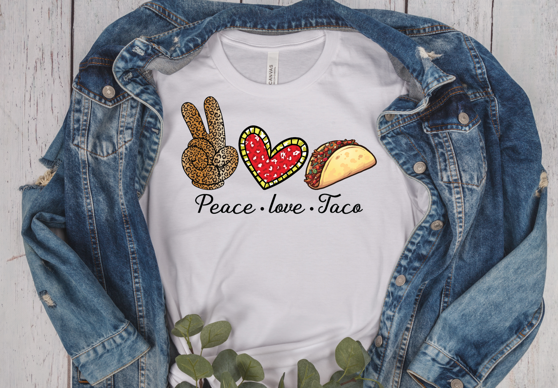 Featuring a fun saying “Peace Love Taco”, For Taco Tuesday this t-shirt will become your go to t-shirt.